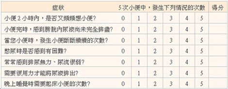 1.民眾可以利用以下攝護腺症狀評分標準來初步檢查攝護腺肥大的問題
